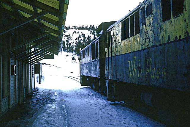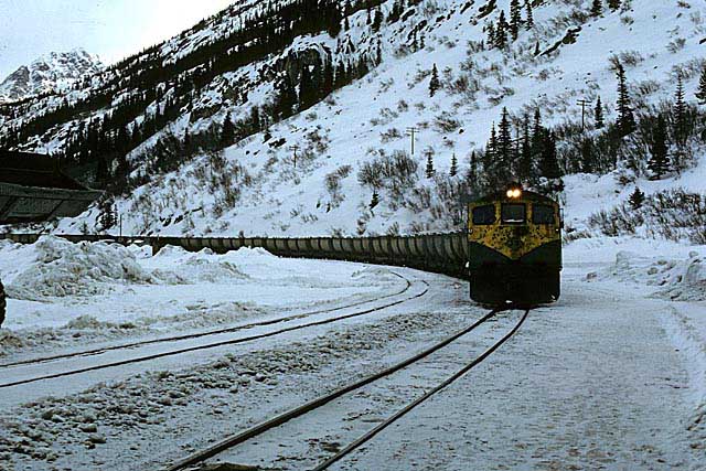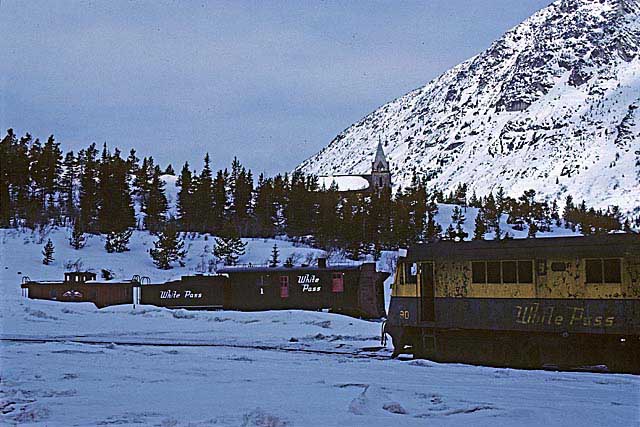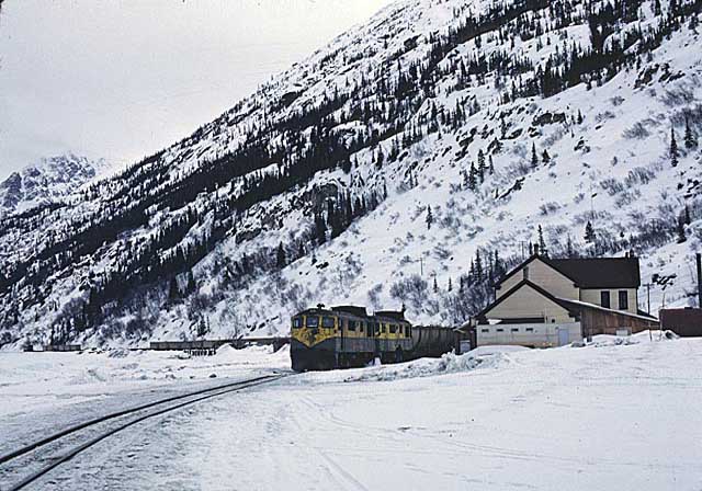 Two GE’s standing at Bennett station. Location:Bennett. Milepost:MP46.6....
