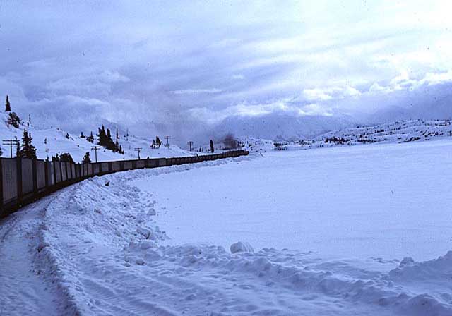 Southbound train at Lake Fraser. Location:NN. Milepost:NN. Date:1980-03-00 by prservices | Apr 17, 2014 | Uncategorized